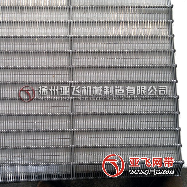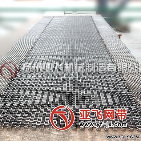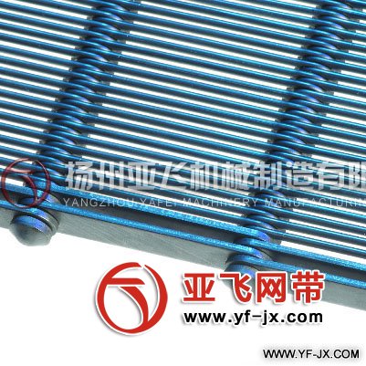 用于自動(dòng)化地板涂裝生產(chǎn)線包括地板烘干回火線、流平機(jī)、輥涂線,使用鏈條型網(wǎng)帶,網(wǎng)帶使用穿絲繞絲編織,兩邊焊接不銹鋼鏈條,網(wǎng)帶中間添加不銹鋼隔套,可以減少摩擦力防止刮蹭,更益于地板的生產(chǎn)和品質(zhì)。