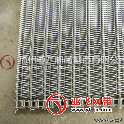 螺旋速凍機(jī)網(wǎng)帶也稱馬蹄式網(wǎng)帶,該金屬網(wǎng)帶用鉤編形式而成;編織簡(jiǎn)潔、美觀實(shí)用,網(wǎng)帶也可采用標(biāo)準(zhǔn)鏈條傳動(dòng)。